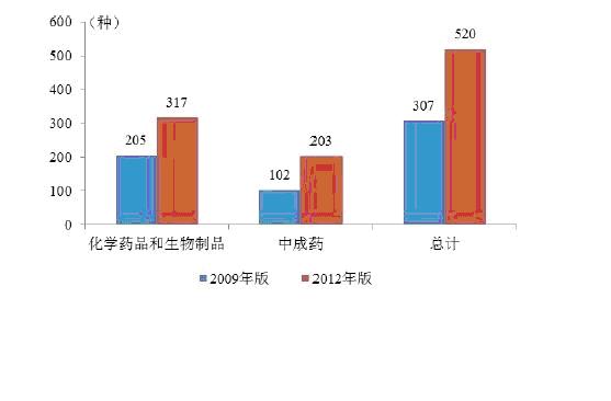圖2:2009和2012年版國(guó)家基藥種類對(duì)比