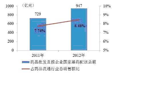 圖1:2011、2012年國(guó)家基藥物送總額及占比