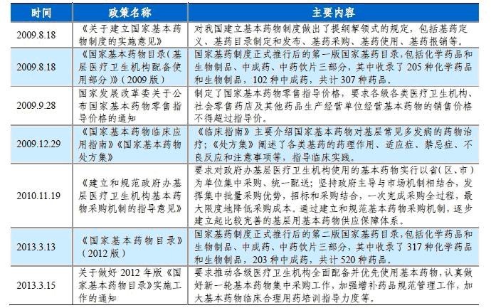 2013年3月衛(wèi)計(jì)委發(fā)布93號(hào)令公告《國(guó)家基本藥物目錄》(2012年版),隨后廣東、吉林等省相繼公布了地方增補(bǔ)目錄,新版基藥目錄藥品數(shù)量較2009版有所擴(kuò)充,使用范圍也較上一版有所擴(kuò)大,且伴隨各省招標(biāo)政策的陸續(xù)出臺(tái),將對(duì)未來2~3年中國(guó)醫(yī)藥行業(yè)運(yùn)行情況產(chǎn)生重要影響。